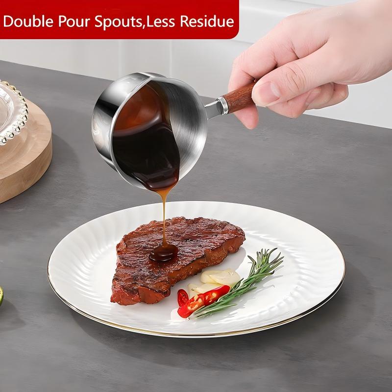 - Dual-Pour Design: Dual pour spouts (left- and right-handed) enable controlled pouring for sauces, oils, or syrups. The sturdy stainless steel handle stays cool and features a hanging hole for space-saving storage.