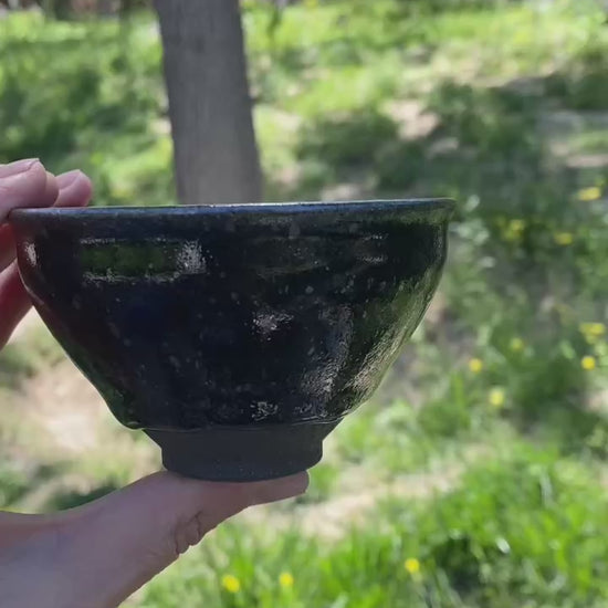 This piece on offer is Handmade article by contemporary regional handicraft man and Wood fire Kilning.Final facility appears the reduction reaction emergence. Emerge starry blue on Black under color(reduction reaction Fe2O3+3CO==2Fe+3CO2).