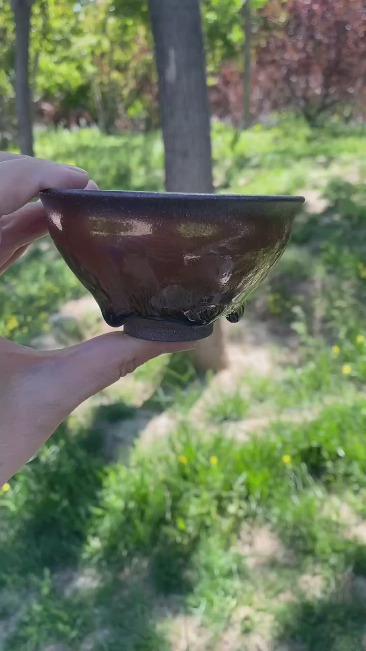Jianzhan made of Fujian Jianyang regional ore and plant ash. The ore with high irom ingredient contribute the mysterious manifestation of utensils. The real Jianzhan fetal emerge typical grey-black color.While the surface color appears brown or black that differentiated by iron ingredient emergence during oxidization or reduction reaction. The facilities eradicate make-up soil,every piece is random and unique with fine & placid glaze showing.