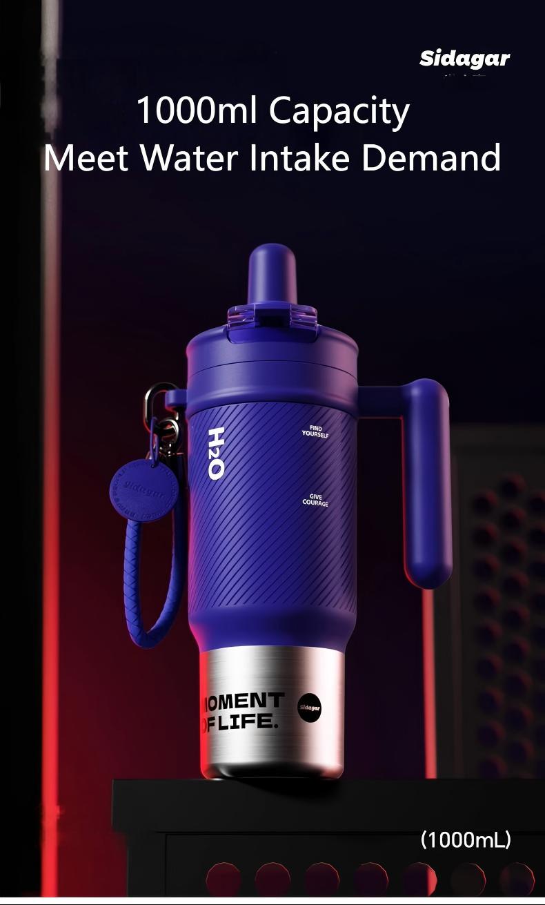 Sidagar 32 oz Tumbler with Handle and Straw, Stainless Steel Insulated Water Bottle with Lid, Fits in Cup Holder, Leak Resistant, BPA Free